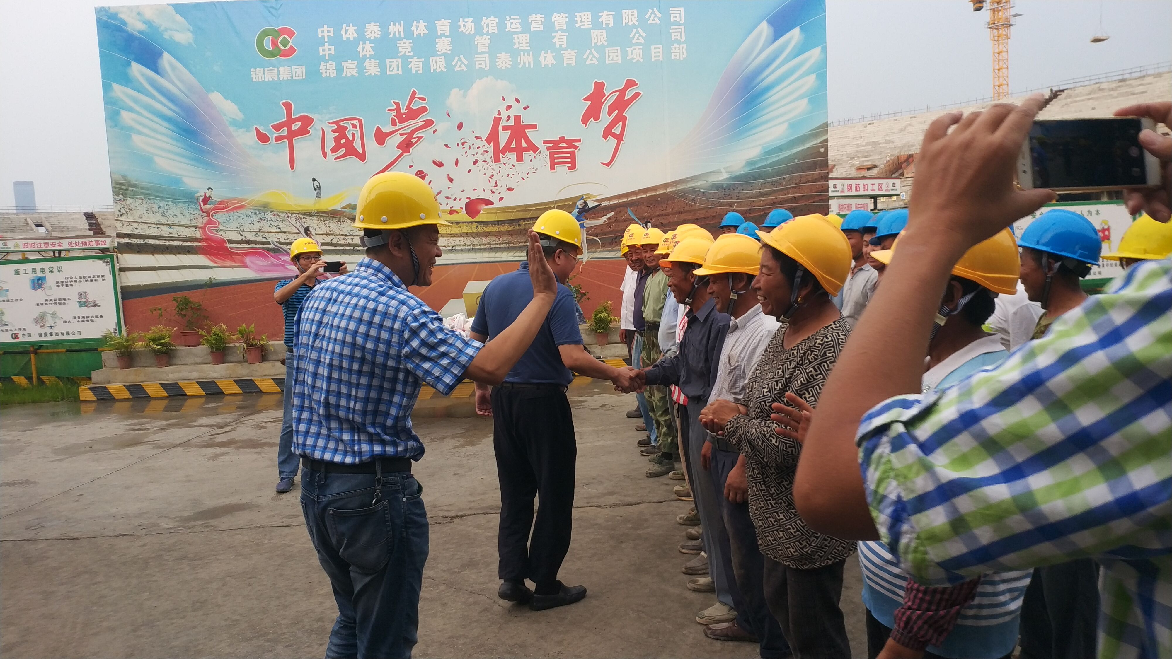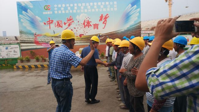7月26日下午,泰州市人民政府徐保国副秘书长一行至集团公司泰州体育公园项目现场“送清凉”,慰问一线民工,嘱咐民工同志们,在炎热的夏天,在施工过程中要注意防暑降温、注意安全。