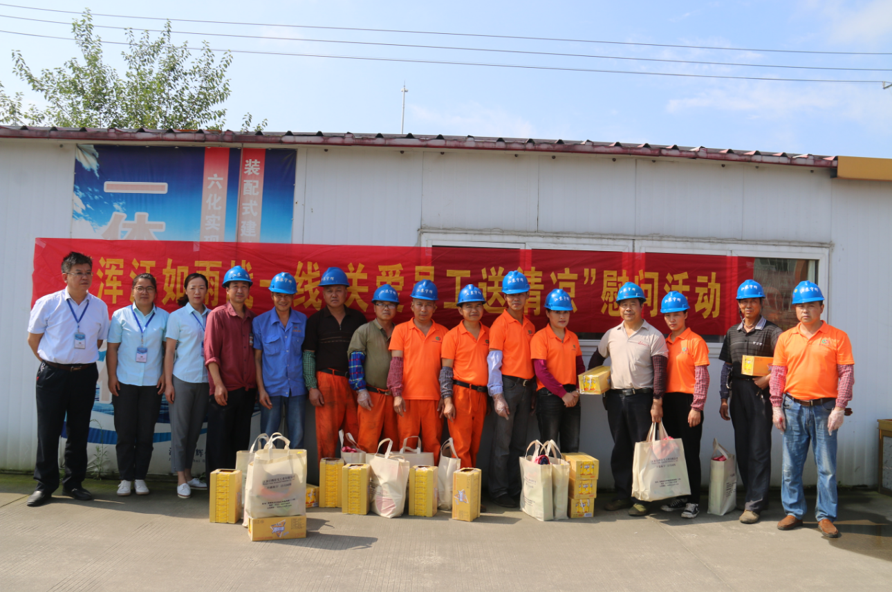 时至盛夏,酷暑盛行。为切实做好防暑降温工作,保障职工的健康权益,确保职工健康平安度夏,预防和减少各类安全生产事故的发生。 7月16日上午, 江苏宇辉工会主席李秀华、党支部副书记、常务副总经理潘亚平一行看望并慰问了高温酷暑期间坚守一线的生产工人,为他们送去了洗发水、沐浴露、洗衣液、毛巾、香皂、风油精等防暑降温慰问品。