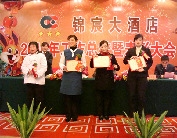 表彰大会上,酒店副总经理朱晓琴对酒店2010年度的工作进行了总结,对现存问题进行了细致的剖析,并制订了2011年的工作计划和目标。