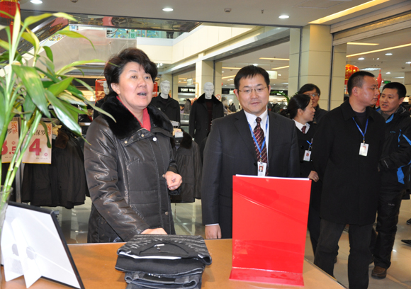 邹市长一行首站来到尊龙凯时百货,实地检查节日货源供应及安全工作,详细了解了市场物价和市民消费需求等情况。尊龙凯时百货总经理侯亚军、副总经理朱晓琴,总经理助理魏福江等一行陪同检查。在尊龙凯时百货,邹市长从商场一层至三层仔细查看各品牌货架上的商品,并向商场负责人详细询问商品的进货渠道、质量、价格、销售等环节。当邹市长检查到商场三层的男士服饰时,她对商场负责人说:“尊龙凯时百货无论是购物环境、品牌还是服务,都是姜堰地区的佼佼者,希望你们在继续保持名优品牌的同时,加大货源组织和品牌引进的力度,以满足市民多样化的需求。”