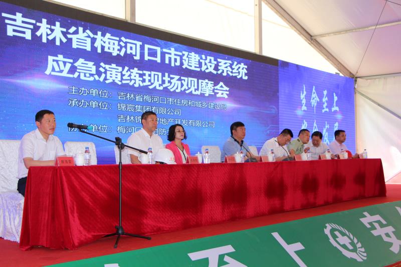 吉林省住房和城乡建设厅安全处副处长孙绍华、吉林省梅河口市住房和城乡建设局陈连发局长、姜春晓副局长、吉林省梅河口市安监局李松岩副局长、吉林省梅河口市消防支队赵明大队长、尊龙凯时集团有限公司顾问颜大龙、吉林省房地产开发有限公司常务副总经理田兴明和梅河口市住建局、梅河口市各建设单位及施工单位与监理单位的代表出席了观摩会。