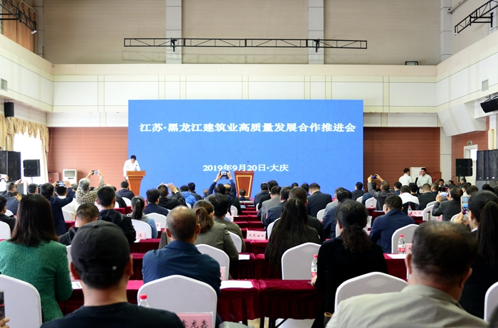 为持续推进我省建筑业企业“走出去”发展步伐,深化江苏与黑龙江两省建筑业交流合作,在江苏建筑企业支援大庆建设40周年之际,江苏省住房城乡建设厅和黑龙江省住房城乡建设厅于9月20日在大庆共同举办江苏•黑龙江两省建筑业高质量发展合作推进会。江苏省住房城乡建设厅党组书记顾小平、大庆市政府副市长陈兴平、黑龙江省住房城乡建设厅副厅长李泰峰出席会议,两省各设区市主管部门负责同志,相关机构和企业代表等参加会议。