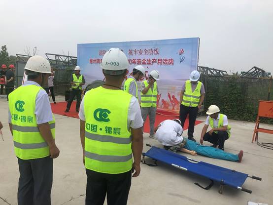 启动仪式上,泰州体育公园项目应急救援小组举行了“触电事故”应急救援预案演练。