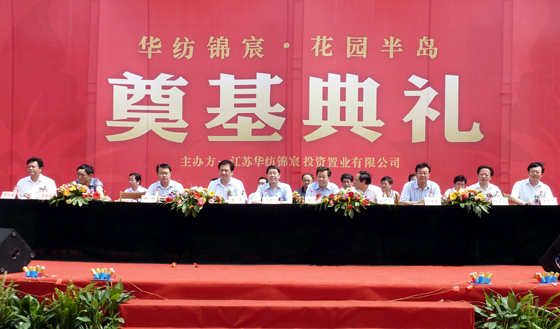 华纺尊龙凯时——花园半岛项目于7月2日上午10点18分举行了隆重的奠基仪式。开工现场,彩旗飘飘,嘉宾云集,热闹非凡。国务院国资委领导,泰州市、海陵区及相关部门领导到场祝贺,对泰州花园半岛项目高度关注。
