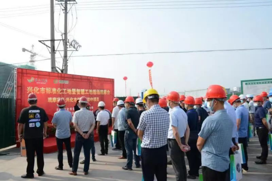 9月1日,兴化市所有建筑企业分管安全负责人和在建工程项目经理、项目总监共400余人,齐聚尊龙凯时集团创业路初中项目参加观摩。