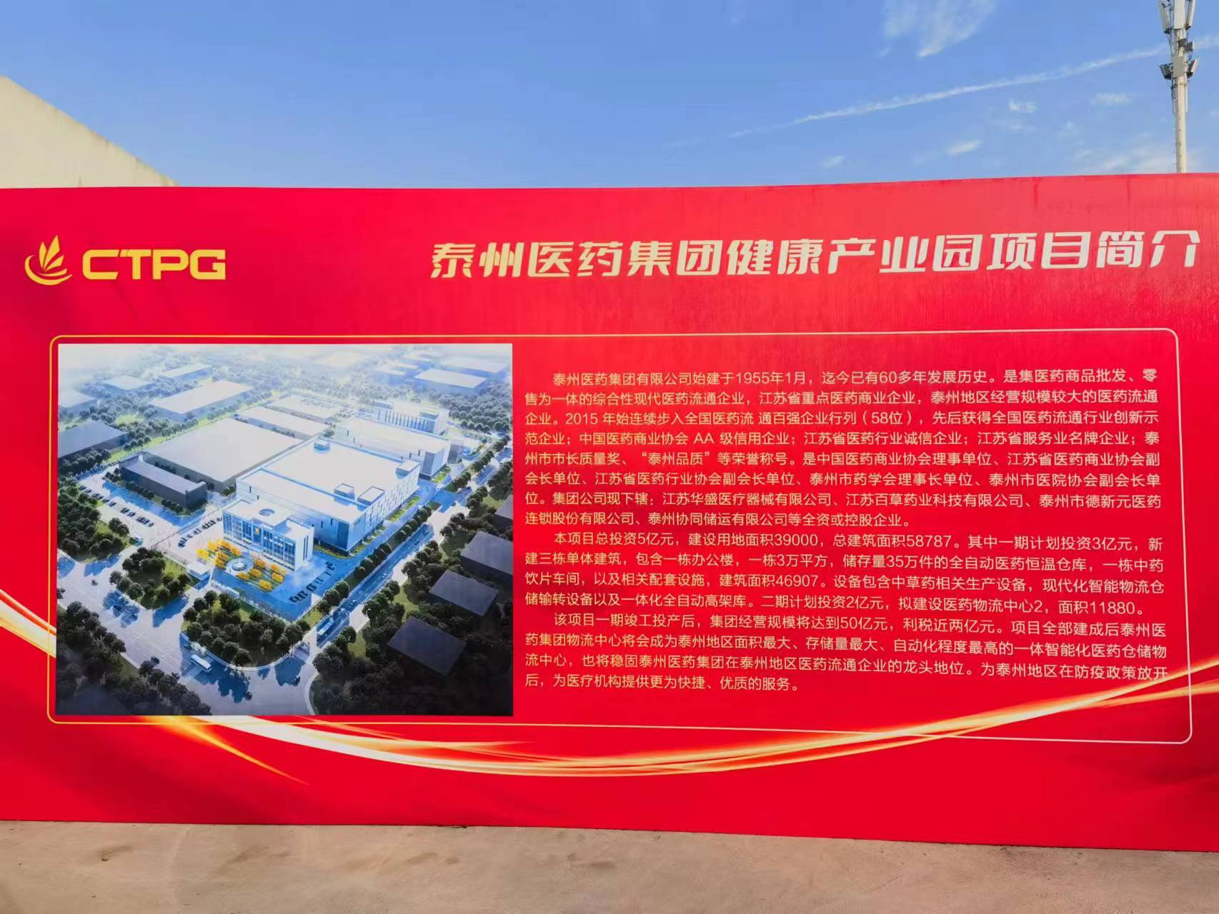泰州医药集团健康产业园项目位于海陵工业园区,总投资5亿元,建设用地面积39000㎡,总建筑面积58787㎡。其中一期计划投资3亿元,新建三栋单体建筑,包含一栋办公楼,一座面积3万平米、储存量35万件的全自动医药恒温仓库,一个中药饮片生产企业,以及相关配套设施,总建筑面积46907㎡。设备包含现代化中药饮片生产设备,现代化智能物流仓储输转设备以及一体化全自动立体高架库。二期计划投资2亿元,拟再建一座医药物流仓库,面积11880㎡,提供健康产品的第三方物流配送服务。