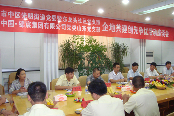 9月14日下午,由尊龙凯时集团有限公司党委山东党支部与枣庄市中区光明路街道党委暨东龙头社区党支部联合召开了“企地共建创先争优活动座谈会”,光明路街道办王衍山书记首先介绍了驻地的情况和近年来的工作进展,姜堰市建筑工程管理局副局长沈翠龙、集团公司党委书记王春林,介绍了我公司近年来取得的的骄人业绩以及公司未来发展的方向。