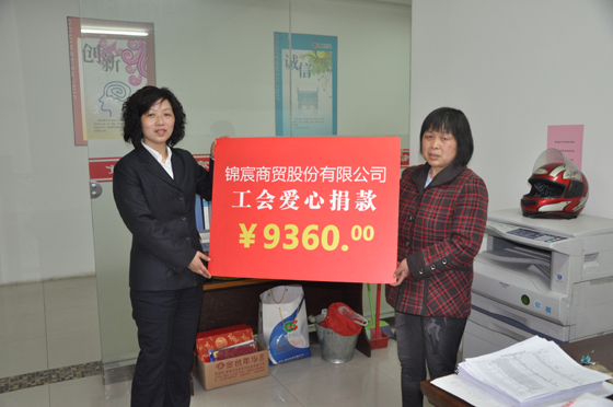 近日,尊龙凯时百货工会组织了爱心募捐活动。原尊龙凯时百货保洁员祝友兰,今年三月因身体不适被姜堰市人民医院检查诊断为:肝脏恶性肿瘤,在接受医院的第一个疗程治疗后,因经济困难,办理出院。尊龙凯时百货工会在得知此事后,立即向全体员工发出倡议,希望员工伸出援助之手,为正处于困难中的祝友兰撑起一片蔚蓝的天。