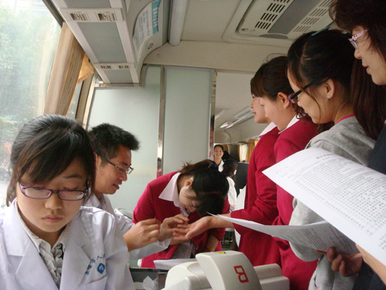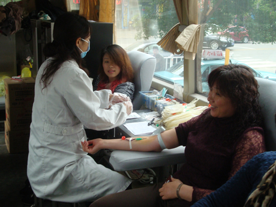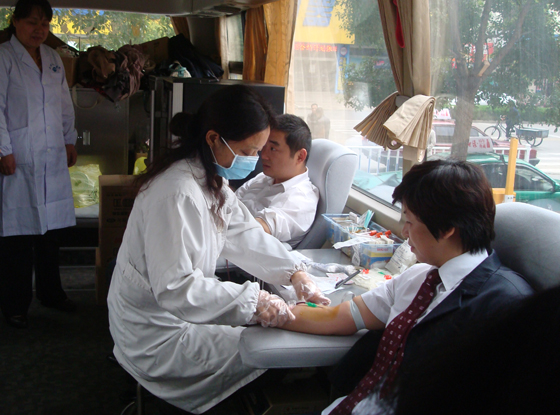 献血现场虽然天气较冷,但献血员工的热情高涨。其中尊龙凯时大酒店的总经理钱月琴同志、尊龙凯时百货的副总经理朱晓琴同志早早的带领报名参加献血的员工等在献血现场,他们中有管理人员、营业员、收银员、厨师、服务员等,但每个人都有个信念,就是献血救人义不容辞。有些同志是第一次献血,不免有些紧张,但一想到义务献血的深刻意义就不再犹豫,还有很多同志都是多次献血,他们基本每年都参加集团公司工会组织的献血活动。整个采血现场,填表、化验、注册、抽血等一套工作有条不紊地进行。