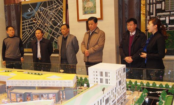 近日,泰州市副市长杨杰、副秘书长李龙根等一行6人至集团公司投资开发的黑龙江现代文化艺术产业园A1项目视察、指导工作。集团公司董事长李焕军、哈尔滨分公司经理钱明及项目销售中心相关人员陪同。