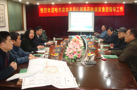 元月9日,哈尔滨市平房区副区长刘云敏一行3人至集团公司考察。集团公司董事长李焕军,副总经理李祥、刘斌及哈尔滨分公司相关人员陪同。
