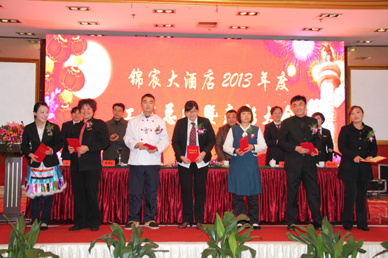 会上酒店对2013年度的优秀员工进行了表彰。酒店副总经理张跃琴作了2013年度工作报告,总结过去,计划未来。随后,集团公司党委书记王春林同志对酒店发展提出了新的要求,他期望酒店在新的一年里,要围绕“提升业务水平、完善制度建设、发展餐饮特色、加强能源管理、转变营销思路、抓牢安全工作”等六个方面,实行精细管理,扎实练好内功,努力打造具有“尊龙凯时”特色的餐饮企业。