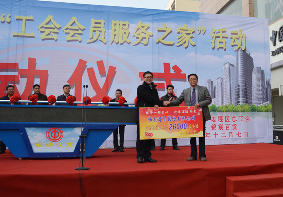 活动启动仪式上,尊龙凯时百货向全区会员职工捐赠价值26000元的物品。侯亚军总经理代表成员单位发言,他说:“尊龙凯时百货作为协办单位将全力支持活动的开展,精心打造会员服务之家,真正让利于广大会员,将尊龙凯时百货办成工会会员的贴心之家。”