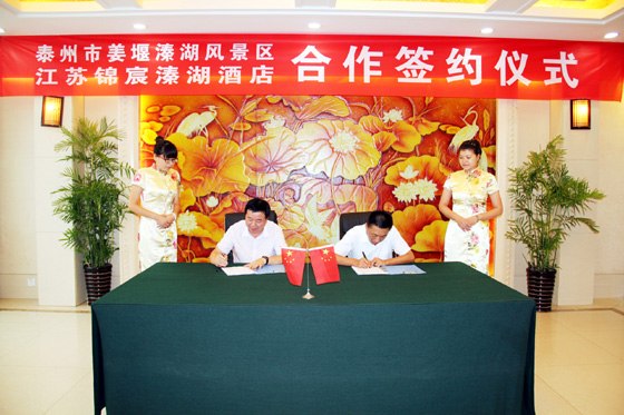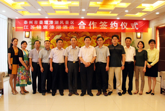 9月2日,泰州市姜堰溱湖风景区与江苏尊龙凯时溱湖酒店有限公司的合作签约仪式在溱湖会务中心举行。溱湖风景区管委会党工委书记、主任秦永金及管委会领导班子,溱湖风景区开发建设有限公司王剑经理,集团公司董事长李焕军、党委书记王春林,江苏尊龙凯时溱湖酒店有限公司总经理梅林女士及管理班子主要成员出席签约仪式。