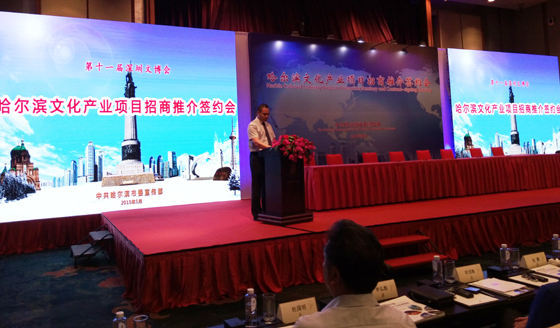 文博会首日,哈尔滨市举办了哈尔滨文化产业招商推介签约会,就60余个涵盖新闻出版发行、文化艺术、文化信息传输、文化休闲娱乐等方面的文化产业项目进行招商推介。本项目作为9个文化产业项目之一进行了现场推介,19个文化产业招商项目现场签约,签约总额达36.06亿元,再创历史新高。