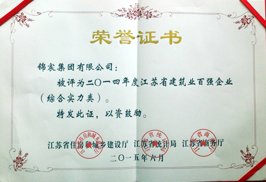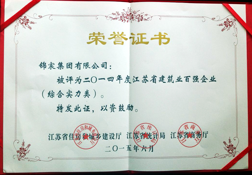 6月11日,江苏省政府召开建筑业创新发展暨2014年度“百强企业”发布会,会议回顾总结了2014年全省建筑业发展工作,发布2014年度全省建筑业“百强企业”名单,部署推进建筑业创新发展,并向受表彰的全省建筑业综合实力、建筑装饰装修、建筑钢结构、建筑安装、基础设施、建筑外经六大类共100家企业颁发了奖牌。尊龙凯时集团榜上有名。