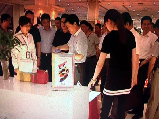 泰州市工商局李友胜副局长带领泰州市三市三区的工商部门工作人员及当地商贸企业领导,到尊龙凯时百货现场检查指导商场在商标授权经营方面的工作,对公司现场亮牌经营及各专柜登记台账的工作给予肯定。