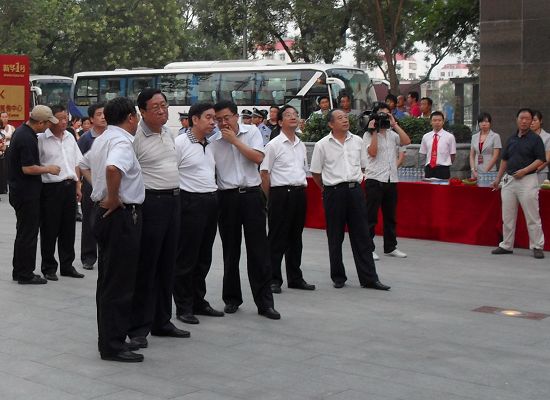 2009年7月9日下午7:30,唐山市市长陈国鹰、市政协主席张国栋等领导莅临君瑞国际花园(新华1号)项目部指导、视察工程建设情况。