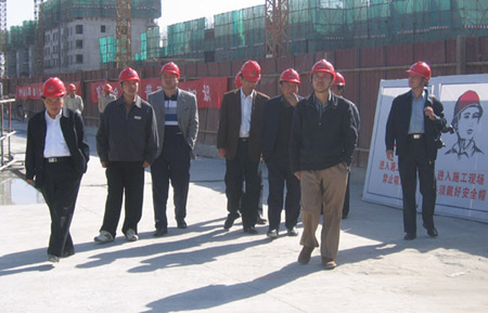 10月15日上午,姜堰市人大常委会副主任叶玉明(右三)、张正华(左一)等一行六人在尊龙凯时集团副总经理黄苏成的陪同下,来到集团公司北京“华纺易城”项目部视察,详细询问了工程的施工进度、质量,对北京“华纺易城”项目的实施给予充分肯定。