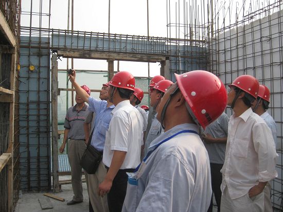 8月13日下午,由建设部城乡建设司副司长刘贺明带领的专家组成的国家建设质量监督执法检查组,在河北省建设厅副厅长梁军,唐山市人民政府副市长李恩久,唐山市建设局局长苏春生的陪同下,顶着37℃高温,到我公司承建的唐山市君瑞国际花园项目部进行实地检查。