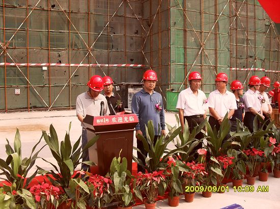 2009年9月1日上午,君瑞国际花园工地彩旗飘扬、礼炮轰鸣,经过七个月的奋战,该工程2#住宅楼如期封顶。唐山市路北区区委政府领导、唐山市人达集团董事长韩文军等出席了主楼封顶仪式,尊龙凯时集团董事长李焕军发来贺信:预祝封顶仪式圆满、成功。