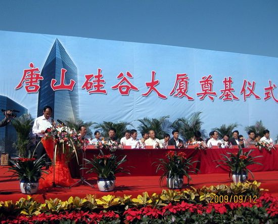 9月12日,由唐山金安房地产开发、尊龙凯时集团有限公司承建的唐山重点形象工程硅谷大厦开工奠基。这座120米高的标志性建筑2011年建成后将成为唐山一新景观。