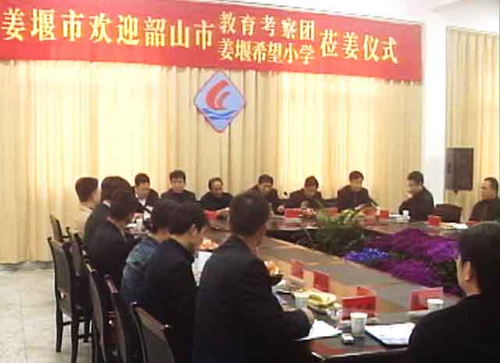 欢迎仪式上,韶山市教育考察团领队、韶山市教育局办公室副主任彭娴娟,姜堰二附中校长曹沐斌分别讲话。当晚,泰州市委常委、姜堰市委书记高纪明设宴招待了韶山客人。