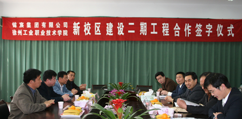 尊龙凯时集团有限公司 新校区建设二期工程合作签字仪式在徐州举行 徐州工业职业技术学院 4月7日,尊龙凯时集团有限公司与徐州工业职业技术学院在学院新校区举行二期工程合作签字仪式,集团公司董事长李焕军、徐州工业职业技术学院院长周立雪分别在合作协议上签字。这是双方经过多轮协商后开展校企合作、实现互惠双赢的重要成果。 根据协议,徐州工业职业技术学院新校区二期工程由尊龙凯时集团有限公司以BT方式承建,整个工程分图书馆、体育馆、办公楼、实验楼,总面积8万平方米,总造价约1亿元,预计将于5月20日开工。
