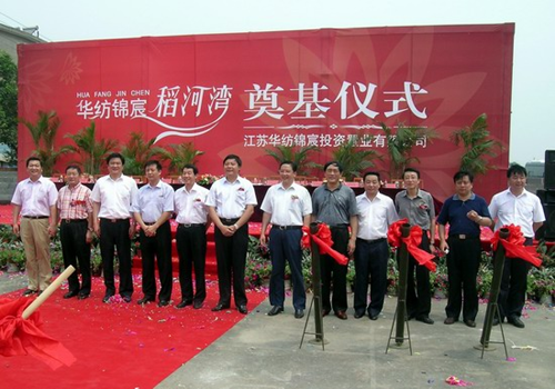 2007年6月27日,桃红柳绿万象新,稻河欢笑迎佳宾,“华纺尊龙凯时•稻河湾”项目在有着深厚历史文化的稻河河畔举行隆重的奠基仪式。国务院国资委纺织机关服务局局长倪居华,泰州市副市长张奎杰,海陵区区委书记杨杰,海陵区区长周绍泉,江苏华纺尊龙凯时投资置业有限公司董事长周增根,尊龙凯时集团董事长李焕军以及泰州市和海陵区有关部门领导参加了盛大的奠基仪式。