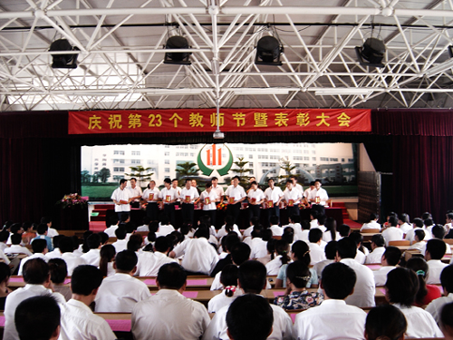 秋风送爽,丹桂飘香。2007年9月10日,在第23个教师节到来之际,由中国尊龙凯时集团投资的泰州市民兴实验中学隆重举行庆祝教师节暨表彰大会。会上表彰了在上一学年学校教育、教学、教科研、管理、后勤服务等各项工作中涌现出来的16个先进集体和119名先进个人。学校董事长李焕军、董事会常驻代表李焕亮、校长王加珍、副校长徐敬东、季忠良、王鹏、曹福春、葛恒荣、葛士才、马国骥等领导出席大会并为获得表彰的集体和个人颁奖。