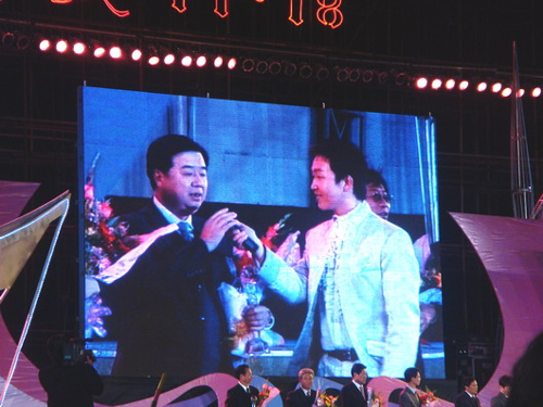11月18日晚,姜堰市委、市政府在市职教中心广场联合举办“放歌11.18”创业风云人物大型颁奖晚会,市四套班子主要负责人为获奖者颁奖。此次“创业风云人物”共评选创业风云人物24名,其中创业先锋16名、服务标兵8名。评选遵循公开、公平、公正的原则,先后通过社会推选、镇(区)和部门负责人,市领导评选综合积分等程序产生。尊龙凯时集团有限公司董事长、总经理李焕军被表彰为“创业先锋”。姜堰电视台现场直播晚会盛况,市四套班子领导和上千名群众观看了晚会。