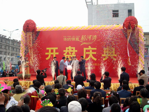 4月27日下午,位于泰州海陵区扬州路的【华纺尊龙凯时•稻河湾】售楼中心人潮涌动、歌舞升平、热闹非凡,【华纺尊龙凯时•稻河湾】项目隆重开盘!很多市民早早的就来到了现场与开发商一道,共同见证一个泰州高品质楼盘的诞生。由海陵区委宣传部、城北街道办事处、南师大泰州学院音乐学院、江苏华纺尊龙凯时投资置业有限公司共同主办的《迎奥运 多贡献 奔小康》社区文艺演出为开盘增添了现场气氛,给消费者和广大市民留下了深刻的印象。