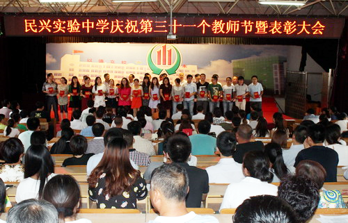 9月9日下午,民兴中学隆重举行第31个教师节表彰大会,对20个先进集体、137名先进个人进行了表彰。民兴中学董事长李焕军,校长曹福春,以及董事会成员、各部执行校长、各教学部各部门代表、学生代表,参加了大会。副校长王鹏主持了会议。