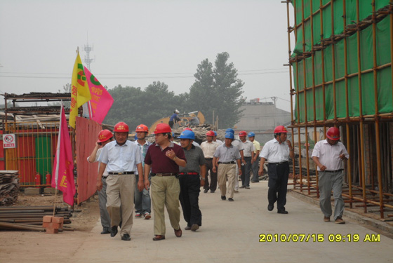 七月十五日上午,由枣庄市住建局常务副局长董金龙带队,枣庄市建筑工程管理局主持工作副局长孟祥峰、住建局副局长刘西川,枣庄市建筑工程质量监督站站长刘昂,枣庄市建筑工程安全监督站站长张伟,枣庄市建筑工程安全监督站安全科科长牛广智组成的检查指导工作组莅临我公司锦龙·国际花园二期工地现场,对照我公司创建文明工地达标标准和创优计划,对安全、质量进行了全面检查。检查中各位主管领导对我工地现场文明施工非常满意,对安全、质量的关键部位和节点也提出了宝贵经验,为我公司申报“省文明工地”称号和争创市“榴花杯”打下了良好的基础。检查结束后主管领导一行还参观了锦龙·国际花园一期住宅小区,对小区绿化和建筑与太阳能一体化及外墙保温表示了充分的肯定。