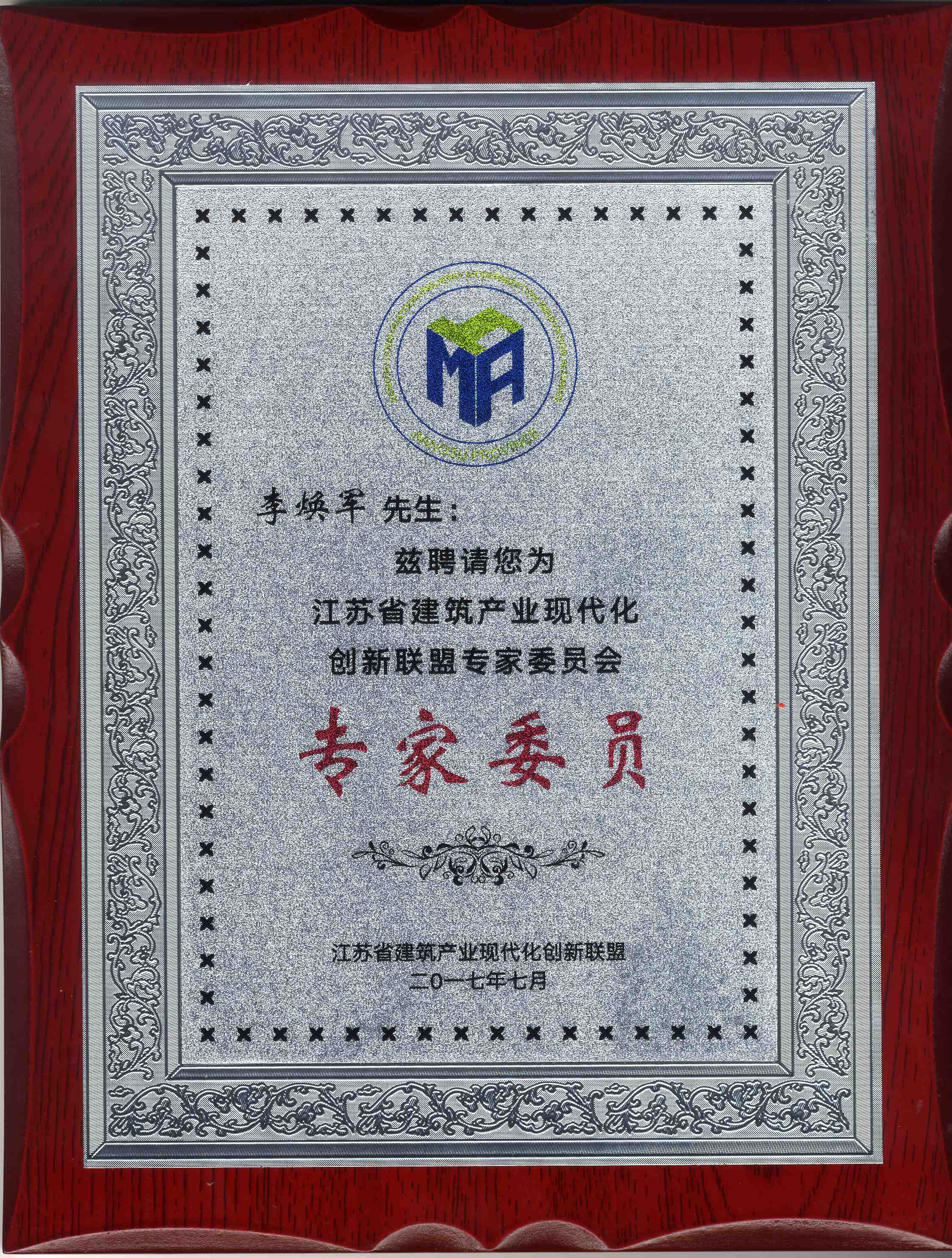 本次大会上,尊龙凯时集团董事长李焕军入选首批20名江苏省建筑产业现代化创新联盟专家委员会专家委员。