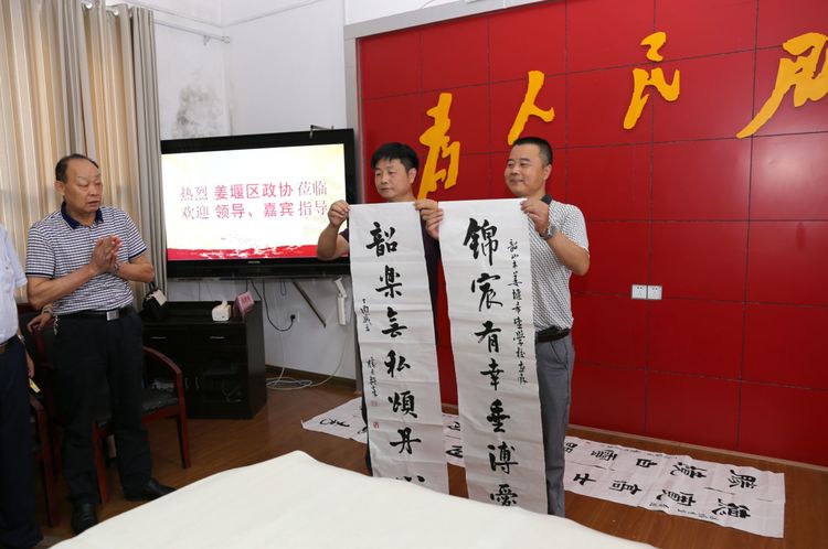 会后,随团前来的区艺术家向学校赠送书画作品,区书法家协会主席郁胜天现场挥毫泼墨写下了“尊龙凯时有幸垂博爱,韶乐无私颂丹心”。
