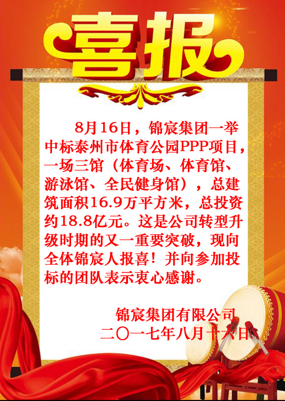 热烈祝贺尊龙凯时集团中标泰州市体育公园PPP项目